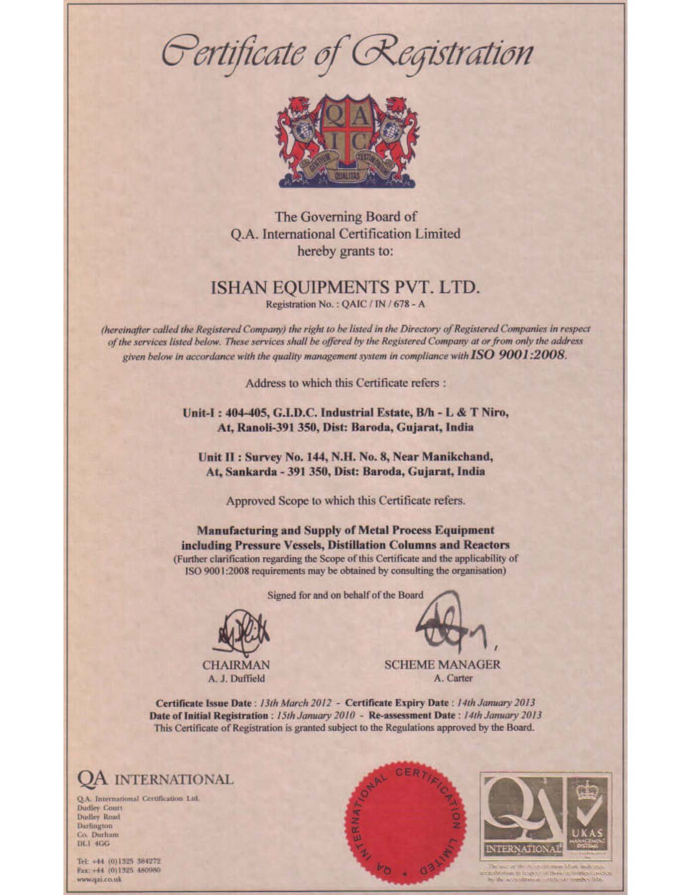ASME - 'U' STAMP Certificate